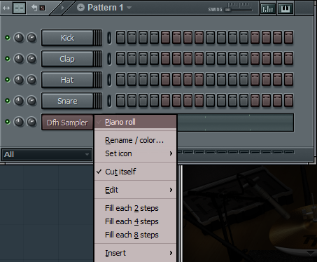 Jika merasa kurang cocok dengan variasi yang ada, dan anda ingin menambahkan sendiri misial hihat, snare, dan lainnya, maka anda dapat mengeditnya lebih lanjut menggunakan piano roll. Caranya, klik kanan pada dfh sampler, lalu pilih piano roll seperti gambar berikut.
