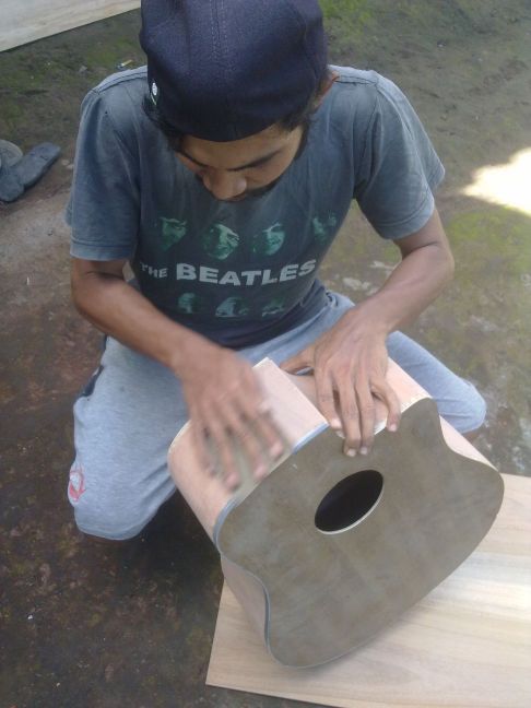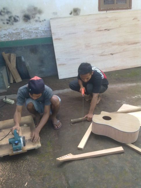 Pabrik gitar ini merupakan semacam kelompok karang taruna yang berkolaborasi untuk menghasilkan karya yang bermanfaat dan bernilai ekonomis. Perlatan yang digunakan pun termasuk bagus dan sesuai standar industri gitar rumahan. Dibawah bisa dilihat tampilan video proses pembuatan gitar akustik dan elektrik dari Lombok ini. Berikut juga beberapa cuplikan gambar hasil dan proses produksi pembuatan gitar custom lokal lombok. Jangankan warga lokal, bule pun pada suka hasil karya teman tamen dari lombok ini. Tuh lihat aja photonya dibawah.