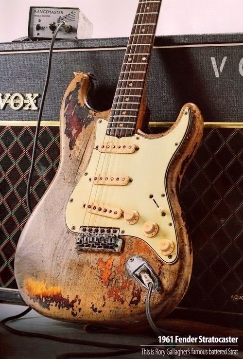 Gitar elektrik fender stratocaster usang justru nampak eksotis dan memiliki soul tersendiri. Pernah gak kamu saat berdiskusi atau lagi ngobrol ngobrol tentang gitar bersama teman teman kamu lalu membicarakan gitar yang sudah usang? atau mungkin membicarakan gitar yang masih baru? atau, pernahkah kamu merasa bahwa gitar yang baru kamu beli ternyata rasanya kok kurang enak atau tak senyaman gitar yang lama? Dan, pernahkah kamu mengalami bahwa gitar yang baru saja kamu beli itu tidak enak dimainkan tapi lama kelamaan kok rasanya enak enak saja? Berikut adalah pendapat saya tentang misteri gitar usang :D. Eh, by the way, anyway, yang saya bicarakan untuk sample adalah gitarnya Rory Gallaghers Vintage 1961 Fender Stratocaster.